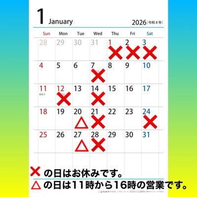 1月の営業予定